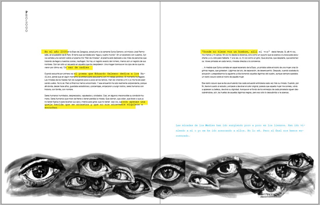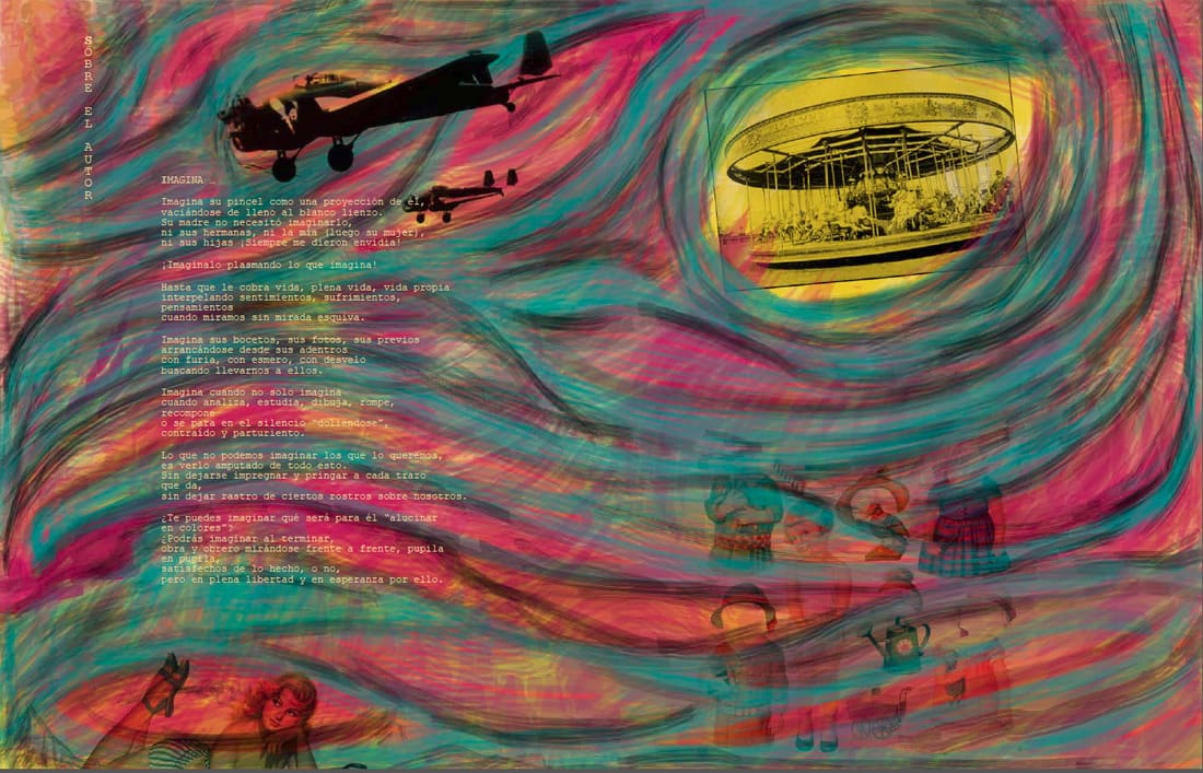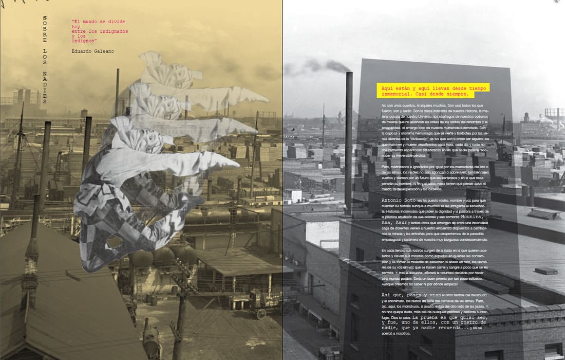 … y como si abrieras una pequeña ventana, se asoma un cuaderno más pequeño con poemas de la mano de Marcelo Gatica dedicados a estos “Nadies”. Collages: Elena Blasco.
