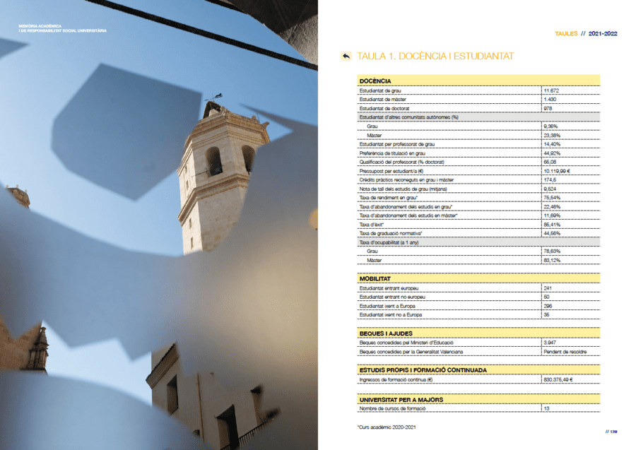 Diseño y maquetación de la memoria académica y de responsabilidad universitaria para la UJI.